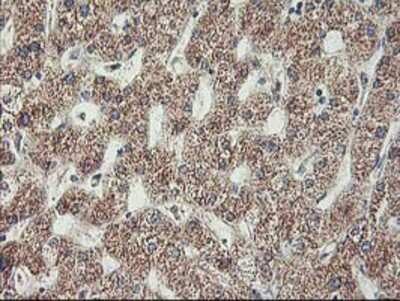 Immunohistochemistry-Paraffin: MTFMT Antibody (1E7) [NBP2-01232] Staining of paraffin-embedded Human liver tissue using anti-MTFMT mouse monoclonal antibody.