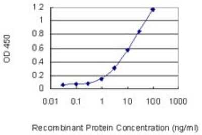 Sandwich ELISA: MTHFD1L Antibody (1E8) [H00025902-M01] - Detection limit for recombinant GST tagged MTHFD1L is 0.3 ng/ml as a capture antibody.