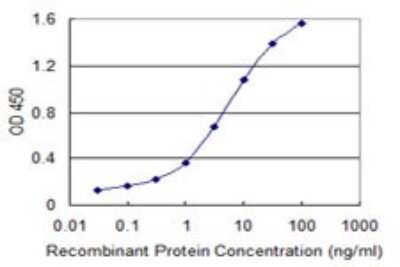 Sandwich ELISA: MYCBP Antibody (1F10) [H00026292-M08] - Detection limit for recombinant GST tagged MYCBP is 0.03 ng/ml as a capture antibody.