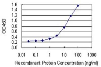 Sandwich ELISA: NAP1L1 Antibody (2A9) [H00004673-M01] - Detection limit for recombinant GST tagged NAP1L1 is 0.3 ng/ml as a capture antibody.