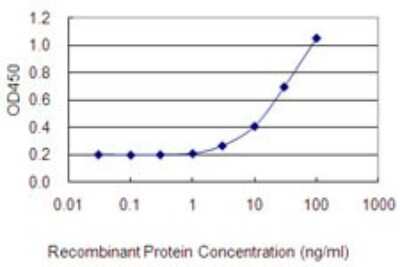 Sandwich ELISA: NUDCD2 Antibody (3C1) [H00134492-M04] - Detection limit for recombinant GST tagged NUDCD2 is 1 ng/ml as a capture antibody.