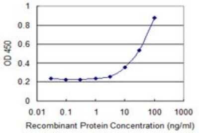 Sandwich ELISA: NXF3 Antibody (2C7) [H00056000-M02] - Detection limit for recombinant GST tagged NXF3 is 1 ng/ml as a capture antibody.