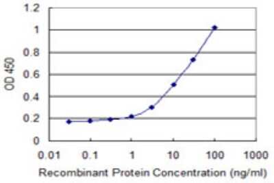 Sandwich ELISA: NXF3 Antibody (3A9) [H00056000-M06] - Detection limit for recombinant GST tagged NXF3 is 0.3 ng/ml as a capture antibody.