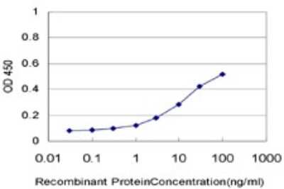 Sandwich ELISA: PCAF Antibody (2B4) [H00008850-M01] - Detection limit for recombinant GST tagged PCAF is approximately 0.3ng/ml as a capture antibody.