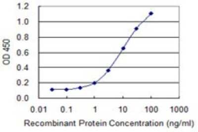 Sandwich ELISA: PDAP1 Antibody (3B10) [H00011333-M05] - Detection limit for recombinant GST tagged PDAP1 is 0.3 ng/ml as a capture antibody.