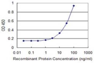 Sandwich ELISA: PFDN2 Antibody (2C1) [H00005202-M07] - Detection limit for recombinant GST tagged PFDN2 is 1 ng/ml as a capture antibody.