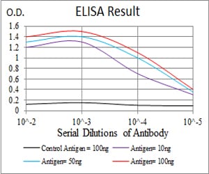 ELISA: PKHD1 Antibody (8G12A1) [NBP3-27118] - Black line: Control Antigen (100 ng); Purple line: Antigen (10 ng); Blue line: Antigen (50 ng); Red line: Antigen (100 ng)Applications for PKHD1 Antibody (8G12A1) - BSA Free