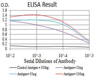 ELISA: RNA polymerase I termination factor Antibody (2F4D8) [NBP3-27122] - Black line: Control Antigen (100 ng); Purple line: Antigen (10 ng); Blue line: Antigen (50 ng); Red line: Antigen (100 ng)