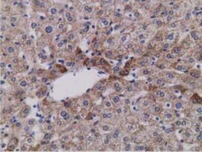 Immunohistochemistry-Paraffin: SDR9C7 Antibody (4B5) [NBP2-03030] Staining of paraffin-embedded Human liver tissue using anti-SDR9C7 mouse monoclonal antibody.