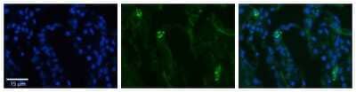 Immunohistochemistry-Paraffin: SLCO2B1 Antibody [NBP1-59811] - Formalin Fixed Paraffin; Embedded Tissue: Human Lung Tissue; Observed Staining: Membrane in alveolar type I cells; Primary Antibody Concentration: 1:100Western Blot: SLCO2B1 Antibody [NBP1-59811]