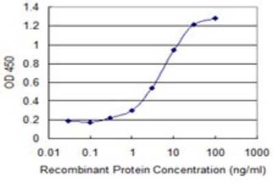 Sandwich ELISA: SPRY1 Antibody (2F1) [H00010252-M02] - Detection limit for recombinant GST tagged SPRY1 is 0.1 ng/ml as a capture antibody.