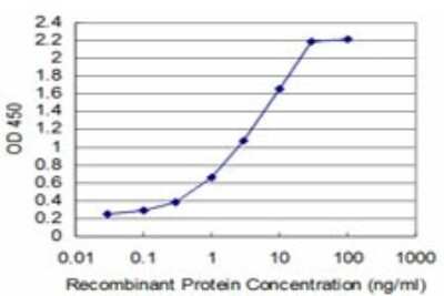 Sandwich ELISA: TCF7/TCF1 Antibody (2E9) [H00006932-M02] - Detection limit for recombinant GST tagged TCF7 is approximately 0.03ng/ml as a capture antibody.