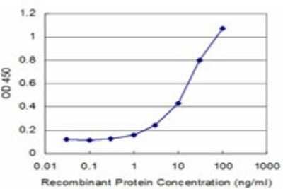 Sandwich ELISA: Thyroid Peroxidase Antibody (2A11) [H00007173-M08] - Detection limit for recombinant GST tagged TPO is approximately 1ng/ml as a capture antibody.