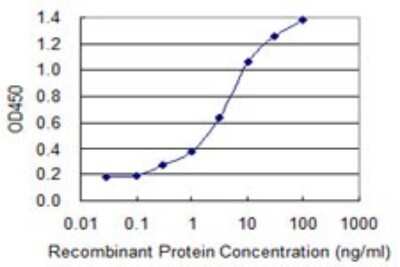 Sandwich ELISA: Zinc finger protein 287 Antibody (3E12) [H00057336-M11] - Detection limit for recombinant GST tagged ZNF287 is 0.1 ng/ml as a capture antibody.