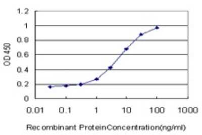 Sandwich ELISA: ZNF131 Antibody (5F1) [H00007690-M07] - Detection limit for recombinant GST tagged ZNF131 is approximately 0.3ng/ml as a capture antibody.