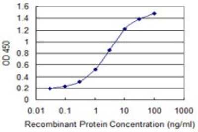 Sandwich ELISA: ZNF192 Antibody (3B10) [H00007745-M10] - Detection limit for recombinant GST tagged ZNF192 is 0.03 ng/ml as a capture antibody.