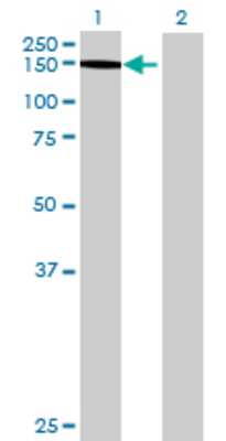 Lane 1: THBS4 transfected lysate (105.82 KDa) Lane 2: Non-transfected lysate.