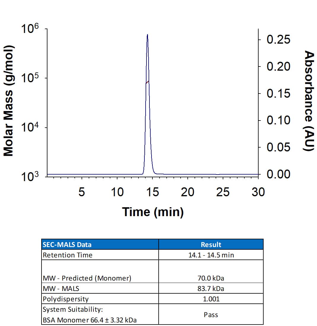 Recombinant Human ErbB2/Her2 His-tag Protein SEC-MALS.