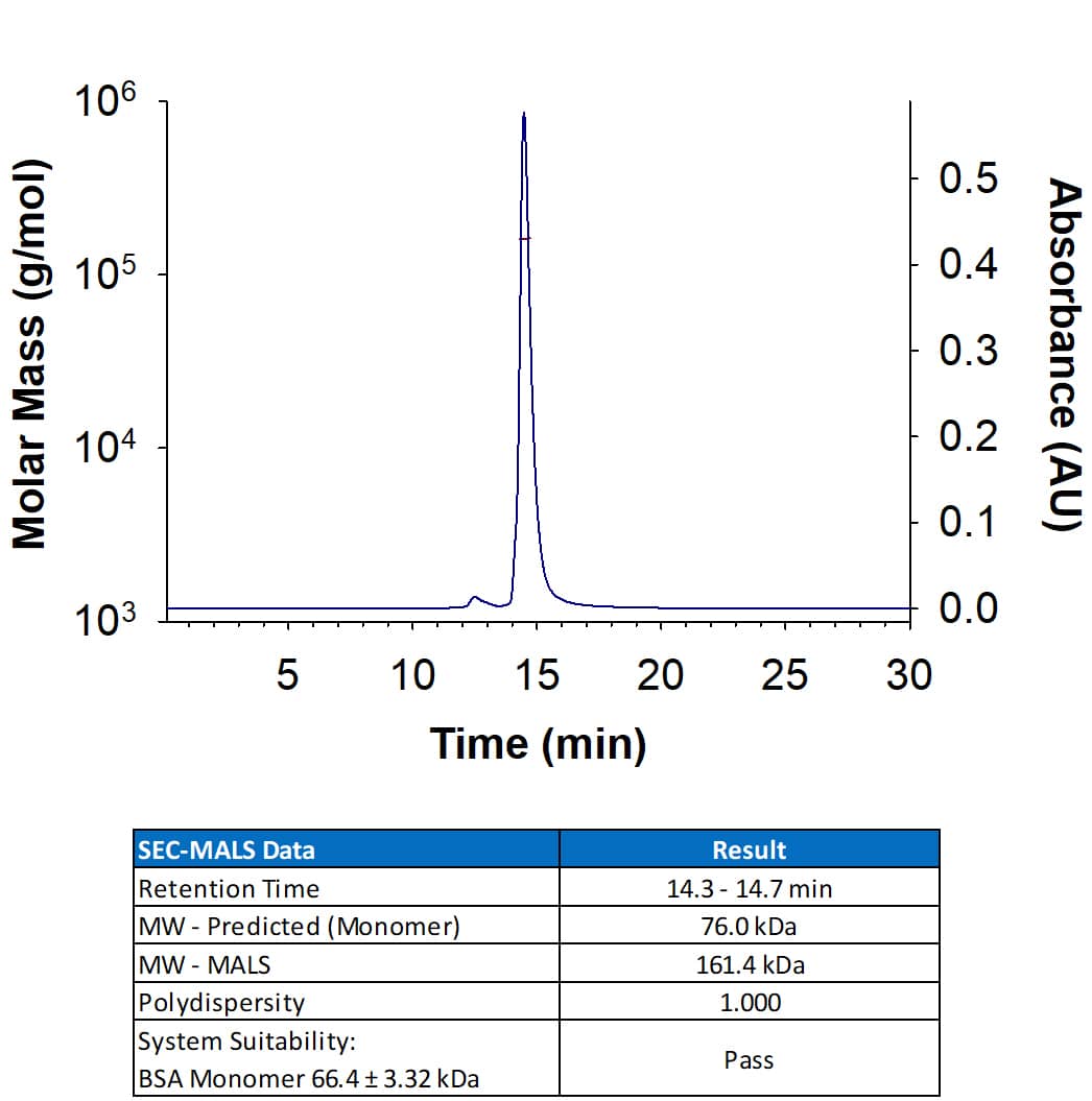Recombinant Human TfR (Transferrin R) Protein SEC-MALS.