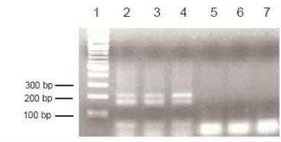Lane 3: Hela cells - RNApol II - GAPDH primers.