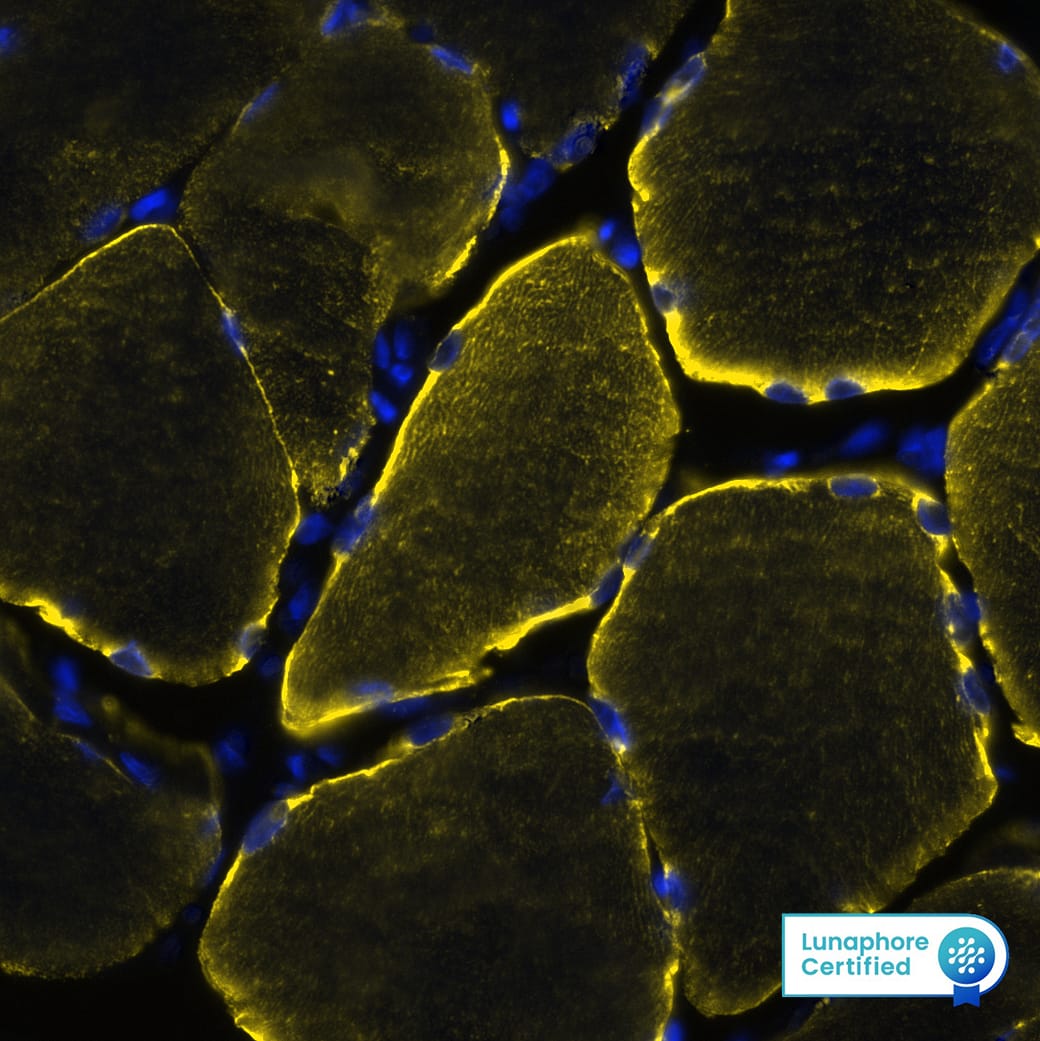 Desmin is a highly-conserved, 53 kDa, muscle-specific molecule that belongs to the intermediate filament superfamily of cytoskeletal proteins. Cytoplasmic Desmin homopolymers form stable filamentous networks that stabilize lateral alignments of myofibrils. Mutations in Desmin typically affect filament assembly and are associated with cardio-skeletal myopathies.