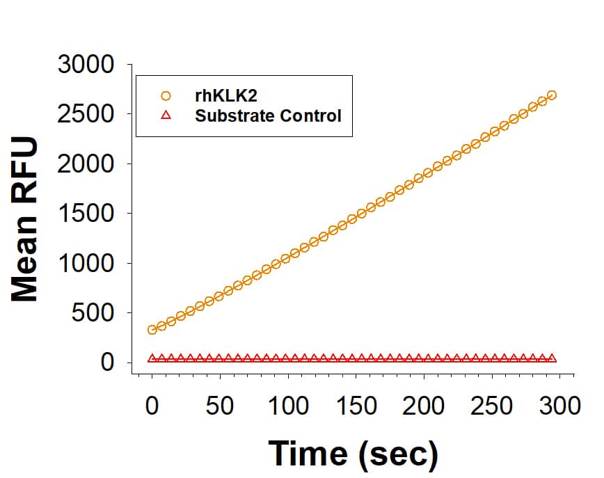 The human tissue kallikrein (KLK) gene family contains 15 members that play important roles in cancer. Notably, kallikrein-1, also known as tissue kallikrein, cleaves kininogen to release the vasoactive kinin peptide, bradykinin or lysyl-bradykinin. Kallikrein-3, called prostate specific antigen (PSA), is an established tumor marker that aids in the diagnosis, staging, and follow up of prostate cancer. Kallikrein-4 is specifically expressed in the prostate and over-expressed in prostate cancer. Kallikrein-5 is widely expressed but found at high levels in skin, breast, brain and testis; over-expression is an indicator of poor prognosis in ovarian cancer. Kallikrein-8 is expressed in the brain and is a novel marker of ovarian and cervical cancer.